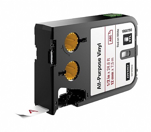 סרט סימון ויניל אדום על רקע לבן Dymo 1868756 XTL All-Purpose Vinyl 12mmX7m